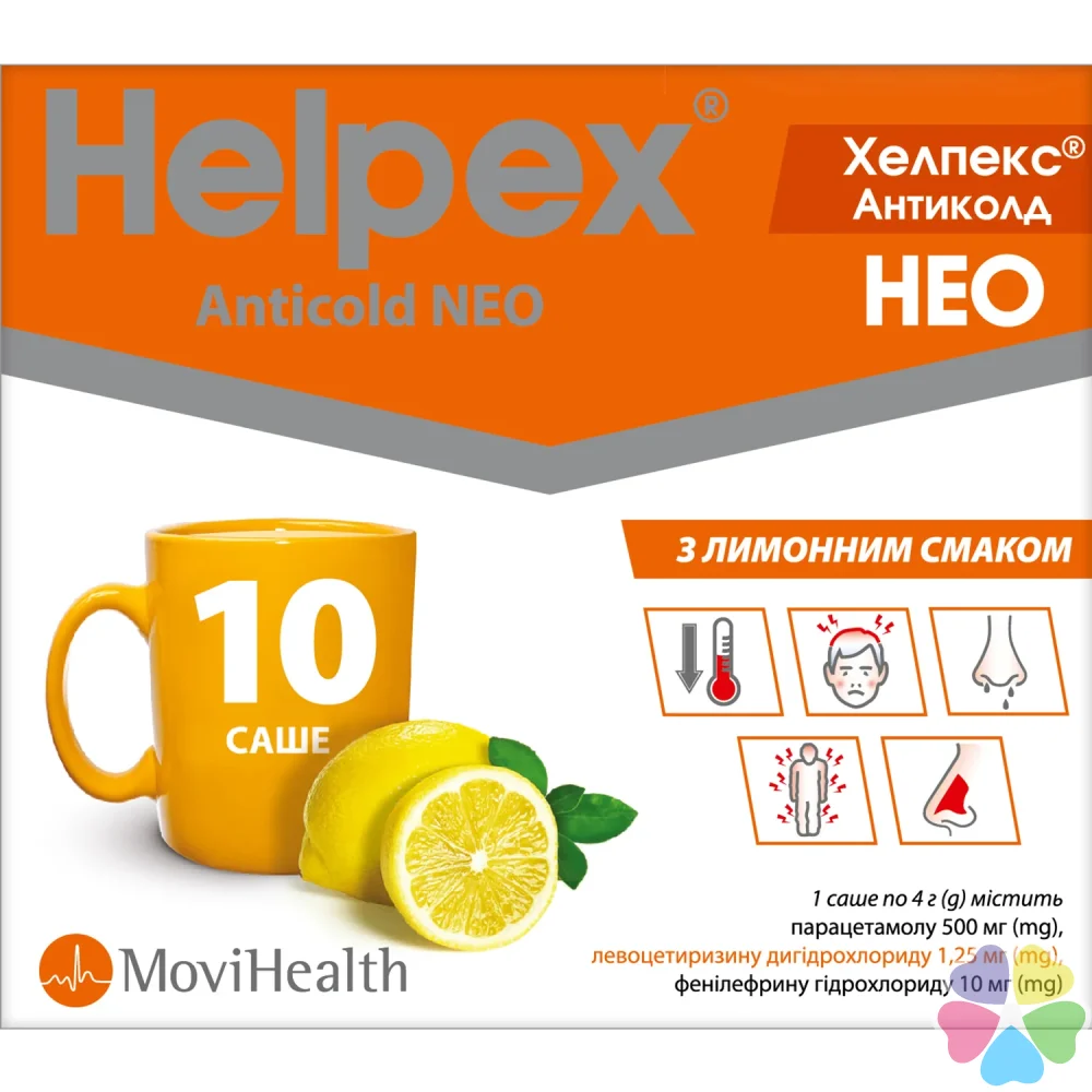 для Хелпекс Антиколд нео порошок д/ор. р-ну зі смак. лимон. по 4 г №10 у саше