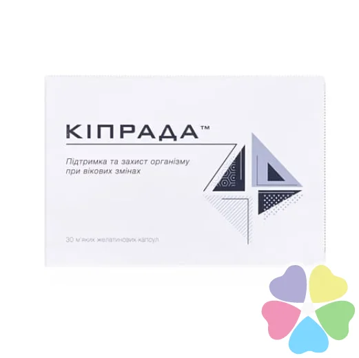 Враховуючи властивості компонентів, Кіпрада™ може бути рекомендована як засіб, що сприяє:- нормалізації метаболічних процесів та покращенню функціонування органів та систем при вікових змінах;