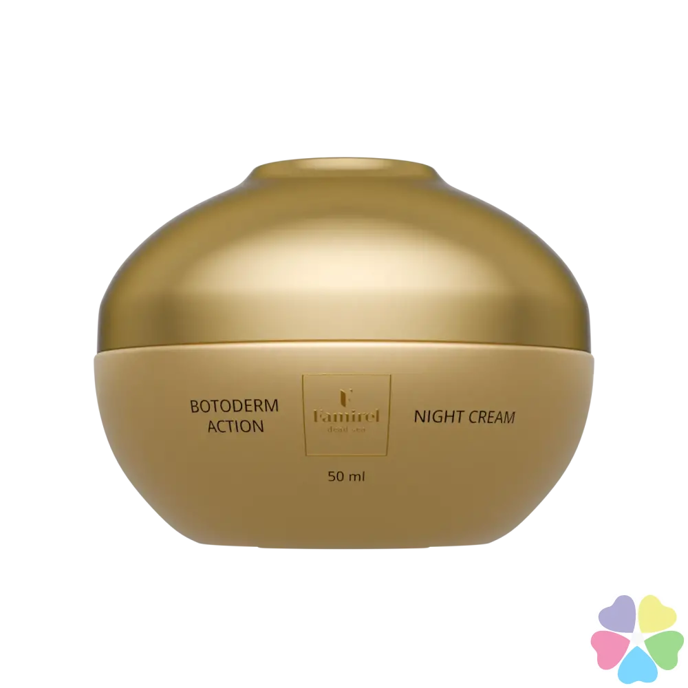 Регулярне використання нічного крему Famirel Botoderm Action щоночі допомагає розгладити мімічні зморшки та відновити природний баланс шкіри.
