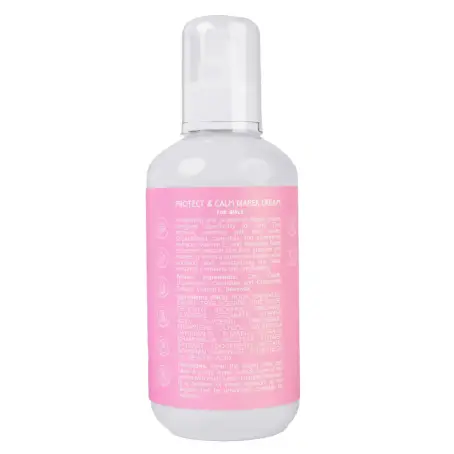 Ingredients (INCI): AQUA, CAPRYLIC/CAPRIC TRIGLYCERIDE, ZINC OXIDE, CETEARYL ALCOHOL, BEESWAX, GLYCERYL STEARATE, STEARIC ACID, GLYCERIN, PANTHENOL, PROPYLENE GLYCOL, CALENDULA OFFICINALIS FLOWER EXTRACT, CHAMOMILLA RECUTITA FLOWER EXTRACT, TOCOPHERYL ACETATE, SORBITAN CAPRYLATE, PROPANEDIOL, BENZOIC ACID.