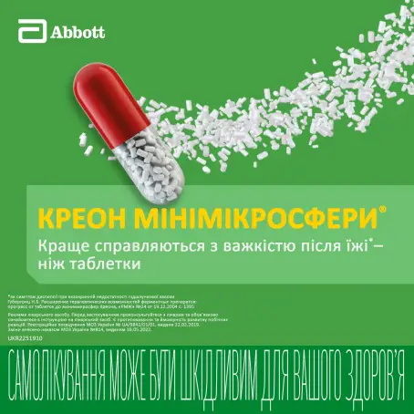 Лікування препаратом КРЕОН® значно зменшує симптоми, спричинені порушенням екзокринної функції підшлункової залози, включаючи консистенцію випорожнень, абдомінальний біль, метеоризм та частоту випорожнень, незалежно від первинного захворювання.