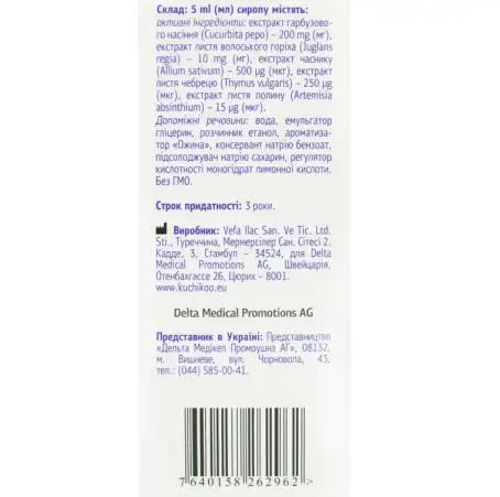 Сироп 150 мл у флаконі з мірним ковпачком, упакований в картонну коробку. Ефективне антигельминтное дію завдяки комбінованому складу натуральних інгредієнтів - сприяє виведенню глистів, перешкоджає повторному зараженню. Приємний смак ожини. Рекомендовано для дітей з 3-х років.