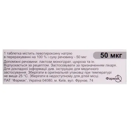 Склад: Левотироксин натрій - 50 мкг (LEVOTHYROXINUM NATRIUM)