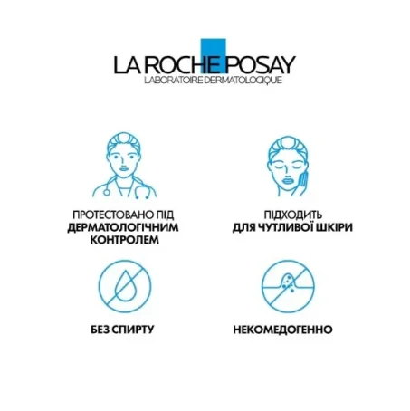 Високоефективний засіб для зняття макіяжу і очищення шкіри обличчя, створений спеціально для чутливої шкіри обличчя. Фізіологічний рівень рН. Очищаючі інгредієнти відібрані для високої переносимості. Не містить мила. Не містить спирту. Не містить парабенів. Не містить барвників. Містить Термальну воду La Roche-Posay. Некомедогенний.