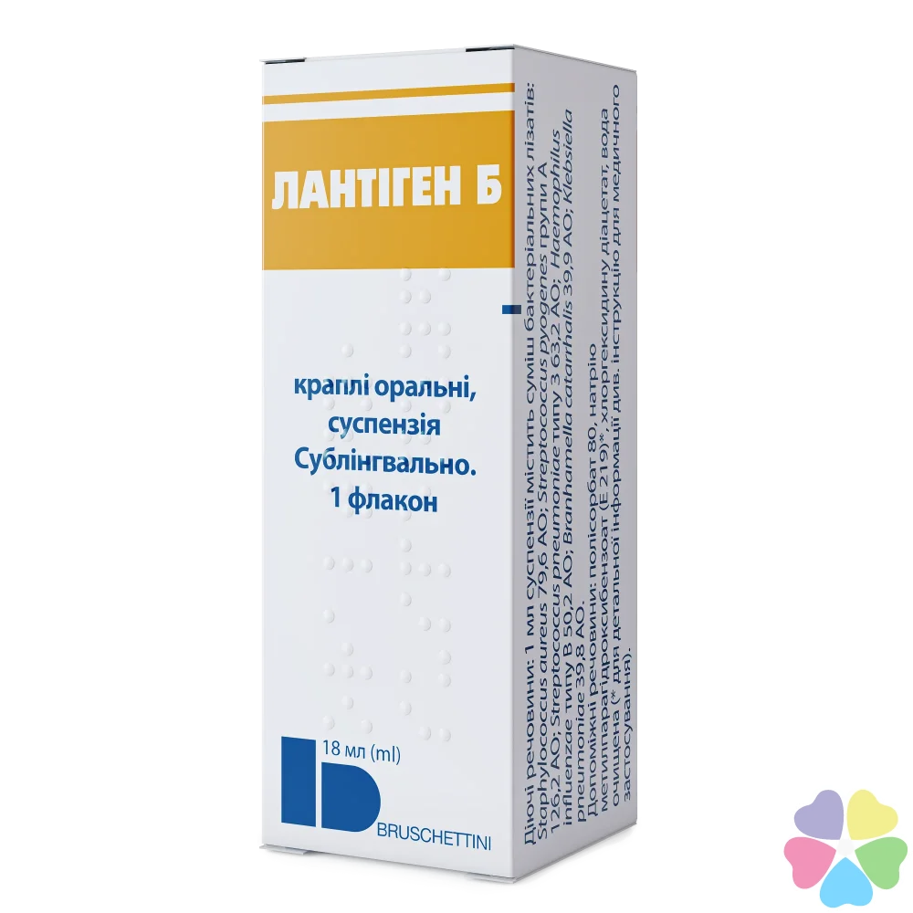 ФармакодинамікаЛантіген Б містить суспензію бактеріальних антигенів, отриманих у процесі контрольованого автолізу деяких видів мікроорганізмів, які є найбільш частими збудниками інфекцій дихальних шляхів (S. pneumoniae, S. pyogenes, B. catarrhalis, S. aureus, H. influenzae, K. pneumoniae).