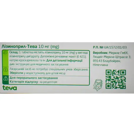 Склад: 1 таблетка містить лізиноприлу 10 мг у вигляді лізиноприлу дигідрату (LISINOPRILUM)