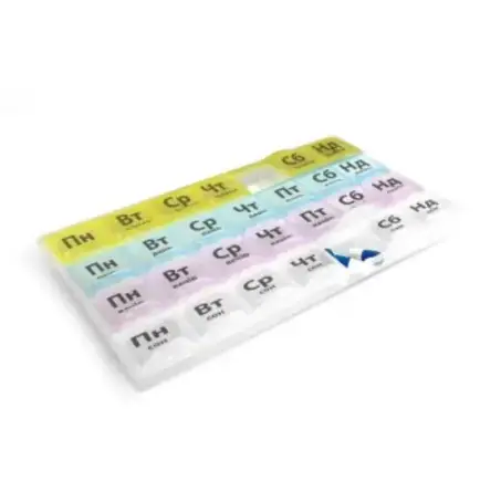 Органайзер призначений для зручності прийому та зберігання лікарських засобів, вітамінів та дієтичних добавок.