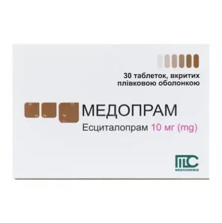 1 таблетка, вкрита плівковою оболонкою, містить есциталопрам (у вигляді есциталопраму оксалату) 5 мг, 10 мг, 20 мг;