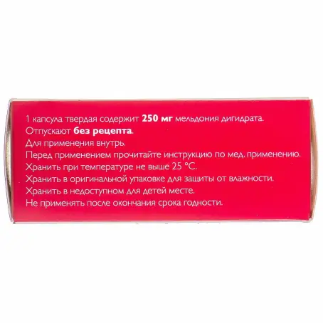 Склад: 1 капсула тверда містить 250 мг мельдоній дигідрату (Meldonium)
