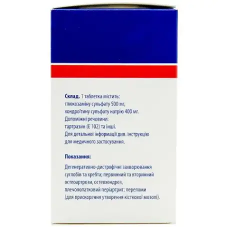 1 таблетка містить глюкозаміну сульфату 500 мг, хондроїтину сульфату натрію 400 мг;
