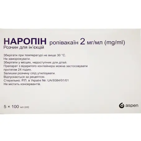 | Концентрація препарату Наропін: 1-2 мг/мл | |