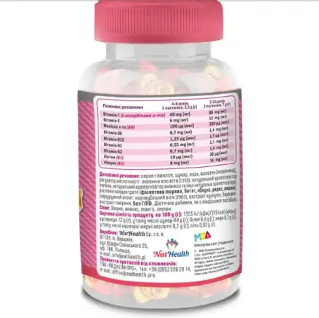 Зручний формат та смак: желейні пастилки мають приємний смак та текстуру, що робить прийом вітамінів більш привабливим для дітей. Вони легко ковтаються і не вимагають додаткового зусилля.