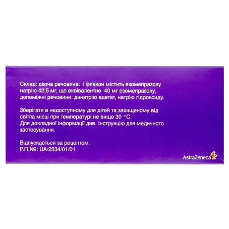 1 флакон містить езомепразолу натрію 42,5 мг, що еквівалентно езомепразолу 40 мг;