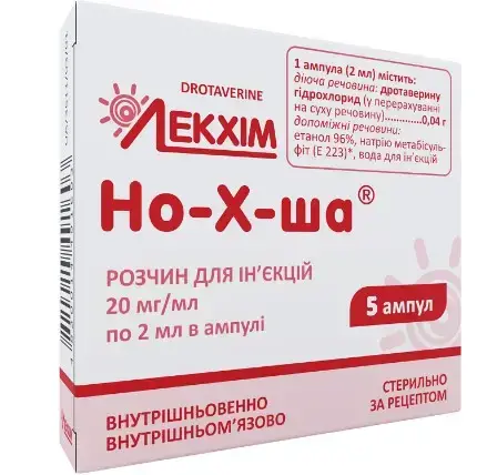 1 мл розчину містить 20 мг дротаверину гідрохлориду у перерахуванні на суху речовину;