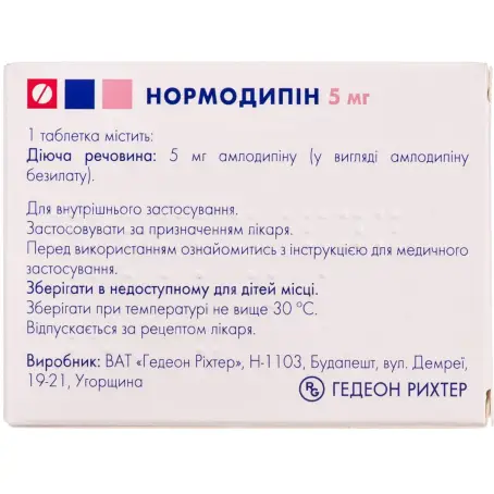 Склад: 1 таблетка містить 5 мг амлодипіну (у вигляді 6,944 мг амлодипіну безилату)/ (AMLODIPINUM)