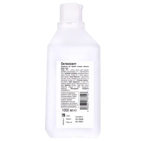 При обробці тіла перед антисептичними операційними втручаннями спочатку протирається місце запланованого розтину, а потім прилеглі ділянки шкіри. При септичній операції обробка розпочинається з периферії. Антисептичну обробку операційного поля необхідно проводити мінімум двічі. З метою обробки ран (включаючи пупочну рану новонароджених), опіків, пролежнів Октенісепт можна застосовувати у нерозведеному вигляді. При цьому застосовується обробка препаратом шляхом протирання змоченим у ньому тампоном, зрошення з пульверизатора або накладання марлевих пов’язок, змочених Октенісептом. Будь-які наступні процедури можна проводити через 1-2 хвилини. З метою профілактики та місцевого лікування запальних процесів для полоскання ротової порожнини 20 мл Октенісепту можна розвести дистильованою (кип’яченою) водою, повторні полоскання слід проводити через 20 секунд.