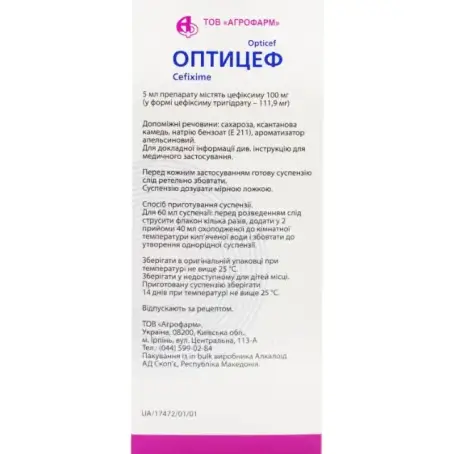 5 мл суспензії містять цефіксиму (у формі цефіксиму тригідрату) 100 мг;