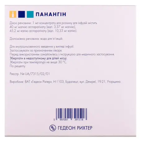 Лікарський засіб: ПАНАНГІН (PANANGIN)