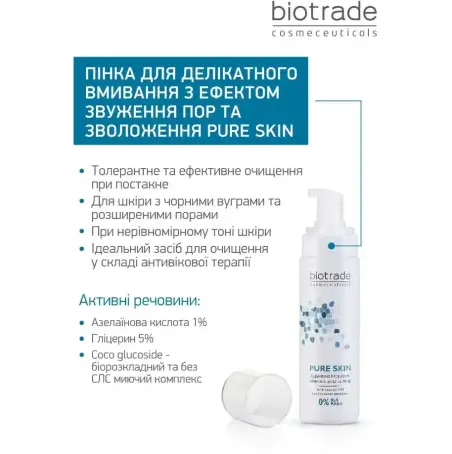 Пінка Biotrade Pure Skin очищаюча, з азелаїновою кислотою, 150 мл можна купити в наших аптеках зараз тут: Тютюнника 56, Барбюса 56, Французський квартал