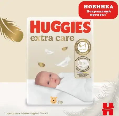 Гіпоалергенні підгузки Huggies® Extra Care турбуються про ніжну шкіру малюка, вони підходять як для хлопчика, так і для дівчинки. У кожному пакованні є унікальні яскраві дизайни Disney® з героями мультфільмів про Вінні Пуха.