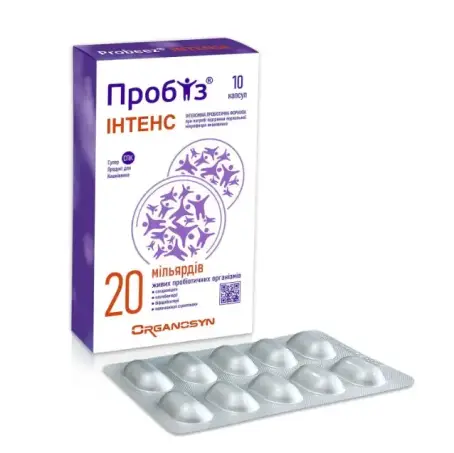 Капсули Пробіз® Інтенс можуть вживатися за потреби підтримки балансу мікрофлори кишечника.