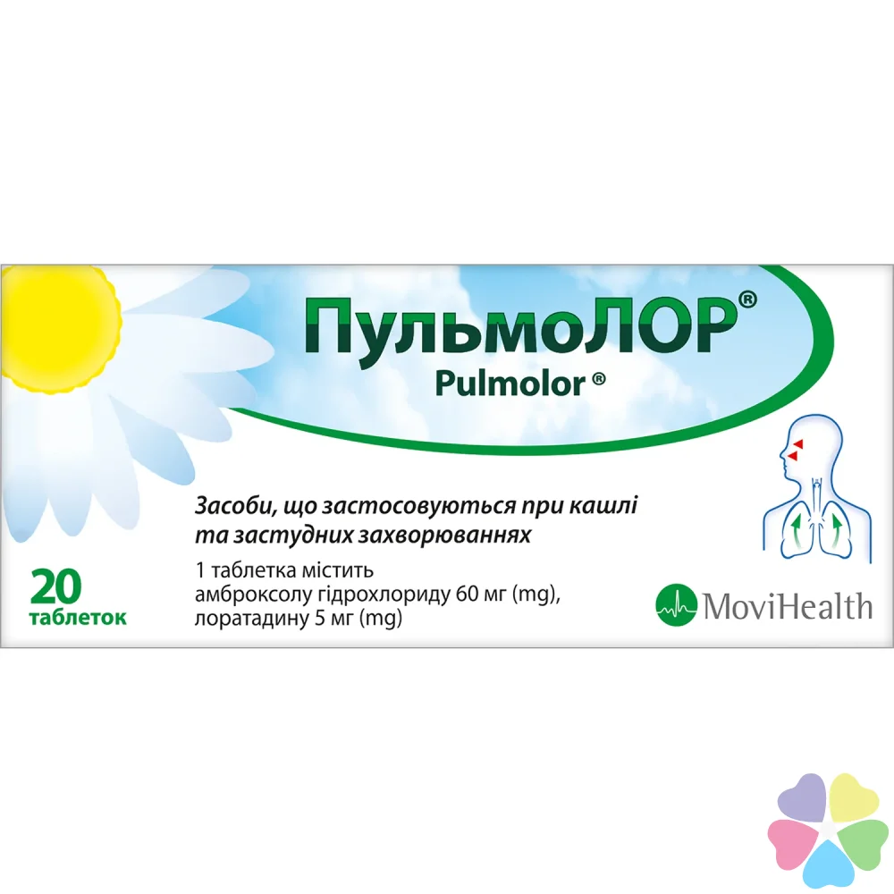 Пульмолор® чинить виражену відхаркувальну дію, пом’якшує та заспокоює сухий кашель, полегшує дихання, нормалізує секрецію бронхіального слизу, покращує відходження мокротиння, зменшує запалення дихальних шляхів, чинить протиексудативну дію, послаблює спазм гладких м’язів бронхів та набряк тканин, у тому числі слизової оболонки носа, горла, гайморових пазух і дихальних шляхів, зменшує проникність капілярів, зменшує закладеність носа, рідкий нежить, сльозотечу, чхання, свербіж піднебіння і носа, почервоніння очей.