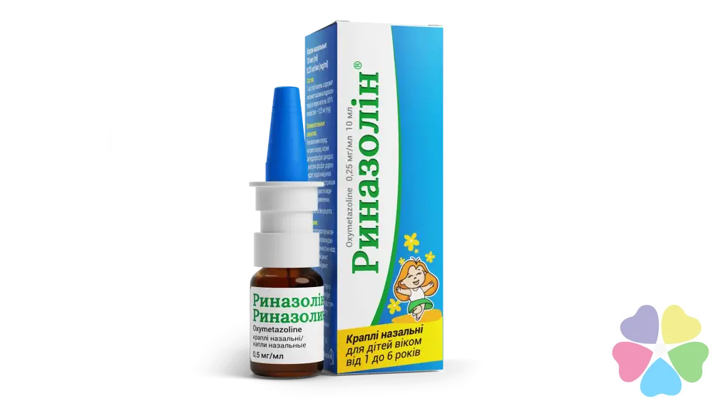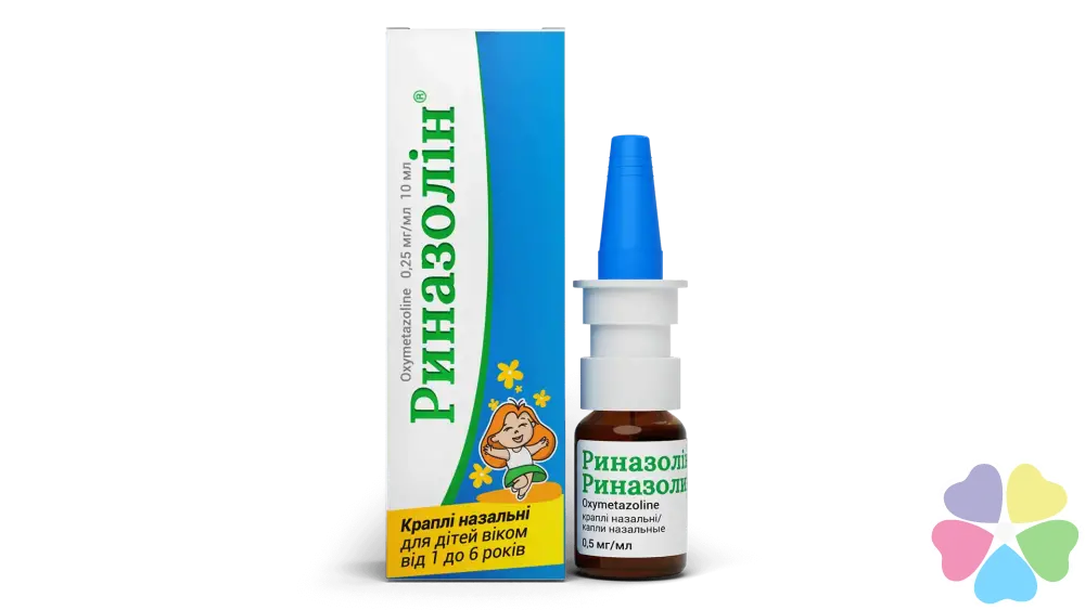 Риназолін® 0,025%, 0,05%, краплі, призначають для застосування в ніс.