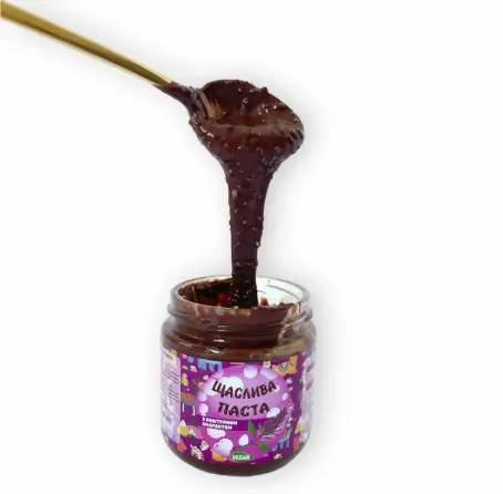 Шоколадно-горіхова паста з фундуком і хрустким амарантом, без додавання цукру, це ідеальний варіант для сніданків: млинці з шоколадною пастою, підсмажені тости та багато іншого.