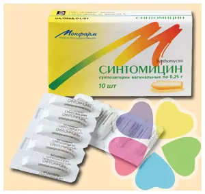 1 супозиторій містить синтоміцину 250 мг (0,25 г);