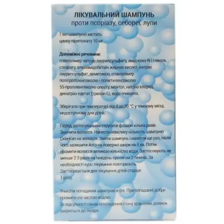 Особливості застосування препаратуНе допускати попадання шампуню в очі. У період ремісії шампунь може застосовуватися для миття голови 1-2 рази на тиждень для профілактики рецидивів. У разі збільшення частоти застосування шампуню можливе виникнення сухості шкіри.