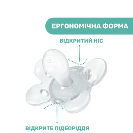 пустушка торкається шкіри дитини 4-ма маленькими опорами, забезпечуючи максимальний комфорт