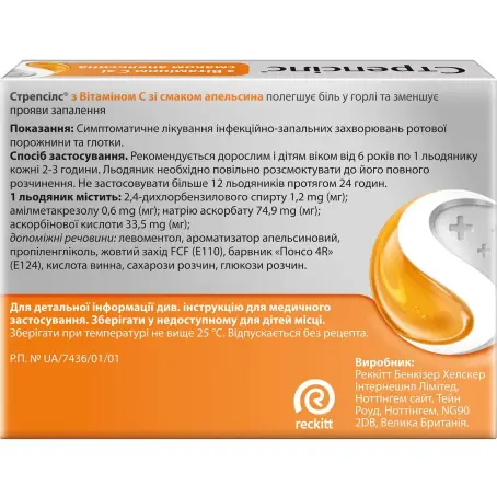 Стрепсілс® з вітаміном С зі смаком апельсина