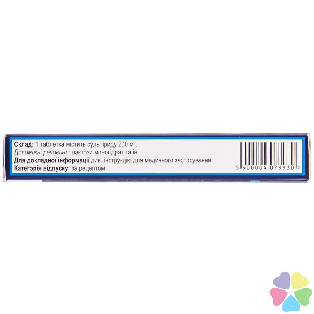 1 таблетка містить сульпіриду 200 мг;