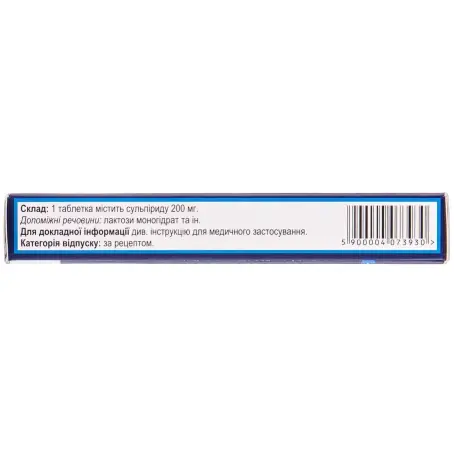 Склад: 1 таблетка містить 200 мг сульпіриду (SULPIRIDUM)