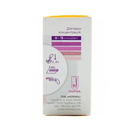 Кетонові тіла (ацетон, ацетооцтова кислота). У здорових людей вміст кетонових тіл звичайними лабораторними методами не визначається. Колір тест-смужки «Ацетонтест» не змінюється.