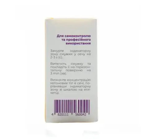 Спосіб використання:Відкрийте пластиковий флакон - візьміть тест-смужку і відразу закрийте флакон. Реагенти тест-смуга чутливі до вологи!