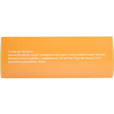 Складдіюча речовина: 1 ампула (1 флакон) містить сухого очищенного екстракту тимусу (вилочкової залози) великої рогатої худоби 10 мг;