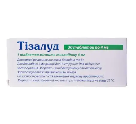 Метаболизм/выведение.Лекарственное средство подвергается быстрому и экстенсивному метаболизму в печени. Тизанидин метаболизируетсяinvitro преимущественно CYP1A2. Метабо-литы неактивны. Они выводятся преимущественно почками (70%). Выведение суммарной радиоактивности (т.е. субстанции в неизмененной форме и метаболитов) является двухфазным, с быстрой начальной фазой (период полувыведения t1/2 = 2,5 часа) и более медленной фазой элиминации (t1/2 = 22 часа). Лишь небольшое количество субстанции в неизмененной форме (около 2,7%) выводится почками. Средний период полувыведения субстанции в неизмененной форме составляет 2-4 часа.