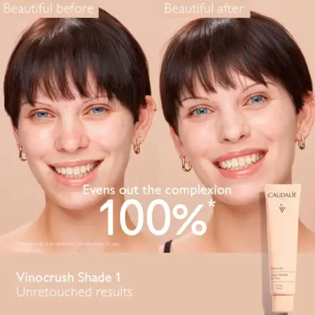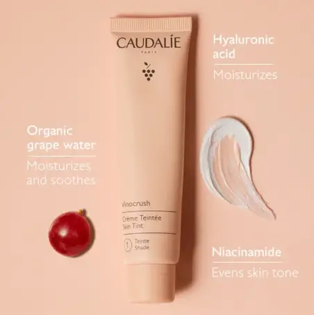 Тональний крем для обличчя Caudalie VinoCrush Skin TintТонуючий флюїд Vinocrush маскує недосконалості та вирівнює тон, покращуючи природний колір шкіри. Його інкапсульовані пігменти природного походження при нанесенні тануть на шкірі та підкреслюють природний колір обличчя, забезпечуючи бездоганний та натуральний тон. Цей засіб для догляду є також декоративним. Його чиста і натуральна формула з гіалуроновою кислотою і виноградною водою зволожує шкіру і надає їй сяйва протягом усього дня. Тонуючий крем Vinocrush містить більше одного мільйона рослинних капсул, які захищають пігменти природного походження від окислення. Підкресліть свій природний колір обличчя, зробивши шкіру рівною та бездоганною, за допомогою капсул. Представлений в трьох відтінках, об'ємами по 30 мл.