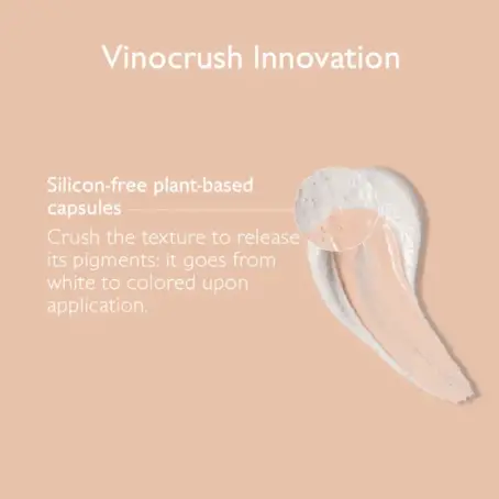 Спосіб застосуванняНанесіть 1-2 горошини тонального крему Vinocrush пальцями на шкіру обличчя та шиї. При нанесенні на шкіру білий флюїд змінює свій відтінок, забезпечуючи рівний і природний колір обличчя. Для більш легкого покриття змішайте тональний флюїд Vinocrush з вашим денним кремом.