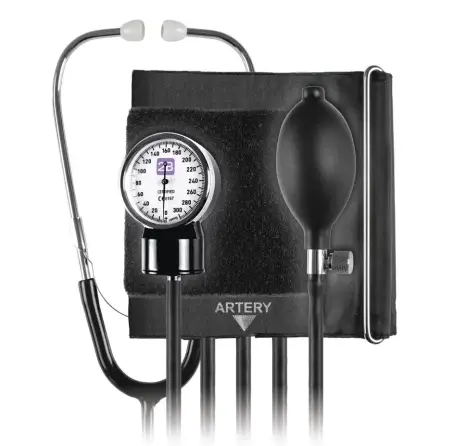 Механічний (анероїдний) сфігмоманометр - тонометр для неінвазивного вимірювання систолічного (верхнього) та діастолічного (нижнього) артеріального тиску у людини непрямим методом Короткова. Він включає манометр, манжету з камерою для накачування повітря та стетоскоп. Процес вимірювання здійснюється шляхом поступового надування манжети, розташованої на плечі пацієнта та одночасного прослуховування за допомогою стетоскопа. Під час цієї процедури фіксуються верхній (систолічний) та нижній (діастолічний) артеріальний тиск, що дозволяє оцінити стан серцево-судинної системи. Механічні тонометри широко застосовуються в медичній практиці та надають точні та надійні результати вимірювань.