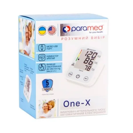 Тонометр Paramed One-X автоматичний електронний можна купити в наших аптеках зараз тут: Академмістечко, Оксіден, Милославська, Павлівська, Пчі́лки, Святослава Хороброго 7, 5 пологовий будинок, Перлина Кадетського Гаю, Мінська, Старонаводницька, Зарічна, Дипломат-Хол, Крюківщина, Палладіна, Бажана Миколи 10, Львів, Богданівська, Чабани, Березнева, Комфорт Таун 3, Comfort Town 3, Шевченка Львів, Ентузіастів, Львов, Гмирі,