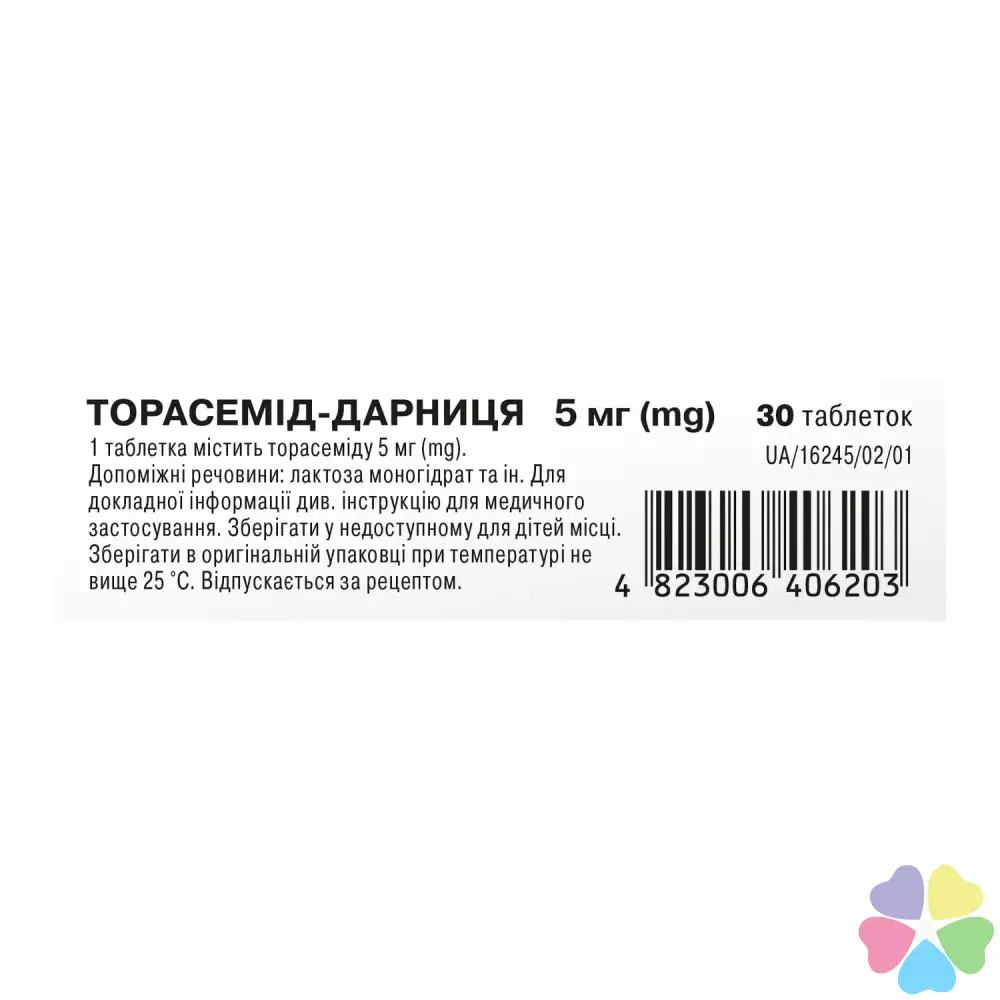 Склад: 1 таблетка містить торасеміду 5 мг (Torasemidum)