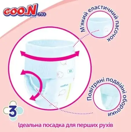 Тривалий комфорт і повна свобода рухів для маленьких непосид — завдяки продукту японського бренду Goo.N. Підгузки-трусики на резинці призначені для малюків, які вже почали активно повзати, ходити.