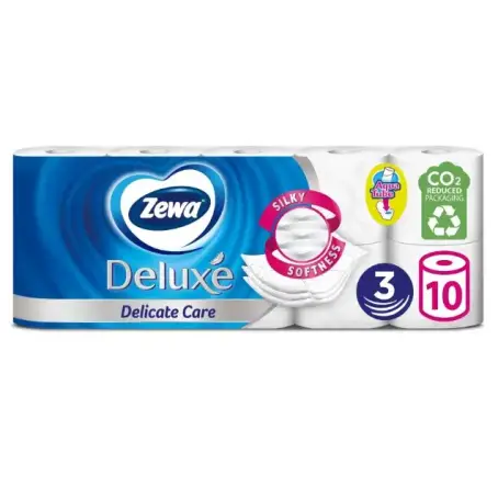 Zewa Deluxе з новими* "подушечками" дарує відчутття "шовковистої м'якості" для вашої ніжної шкіри! Завдяки нашим м'яким і вбираючим подушкам, які тепер мають "шовковисту" поверхню. Тришаровий туалетний папір Zewa Deluxe Delicate Care - м'який і міцний, якісний туалетний папір без аромату. Унікальна втулка Aqua Tube легко розчиняється у воді.