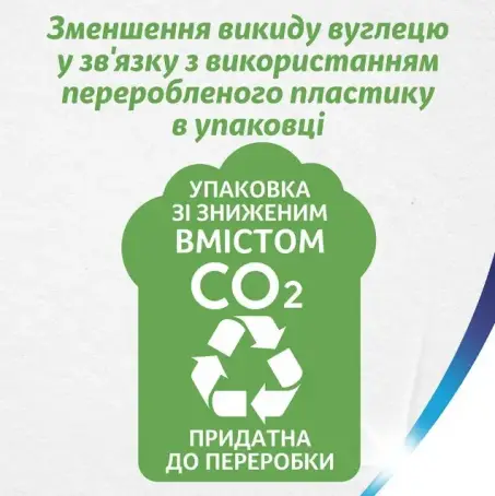 **Зменшення викиду вуглецевого сліду у зв'язку з використанням переробленого пластику, за результатами оцінки життєвого циклу проведеної Ессіті. Переробка згідно ISO 18604 для різних цілей, залежить від наявності перероблюючих потужностей в вашому регіоні чи місті.