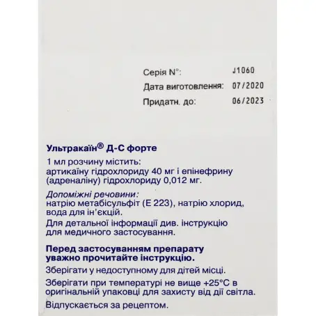 Слід надавати перевагу препарату Ультракаїн® Д-С, оскільки він містить менше епінефрину (1:200 000), ніж Ультракаїн® Д-С форте.