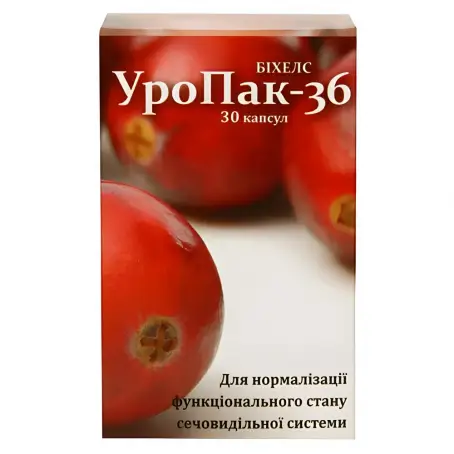 В кожній капсулі УРОПАК-36 міститься 144 мг сухої речовини екстракту журавлини, що відповідає 36 мг проантоціанідину А. Проантоціанідини (РАС) - це природні речовини, що викликають пошкодження бактеріальної оболонки, перешкоджають розмноженню та прилипанню (адгезії) бактерій на епітелії сечовивідних шляхів.