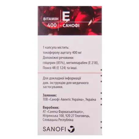 1 капсула містить 100 мг або 200 мг, або 400 мг токоферолу ацетату;