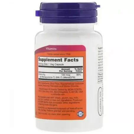 MK-7 Вітамін K-2 100 мкг від NOW Foods відноситься до групи вітамінів К і є жиророзчинним вітаміном. МК-7 містить високо біологічно активну форму вітаміну К2. Вітамін K добре відомий за його роль у синтезі низки факторів зсідання крові. Вітамін К2 та його залежні відіграють центральну роль у метаболізмі кальцію, а також в інших важливих функціях, що не стосуються коагуляції. Як правило, вітамін К2 використовується для зниження ризику кровотеч, при захворюваннях печінки або тривалому прийнятті антибіотиків. Він бере участь у ряді найважливіших процесів, що відбуваються в організмі.
